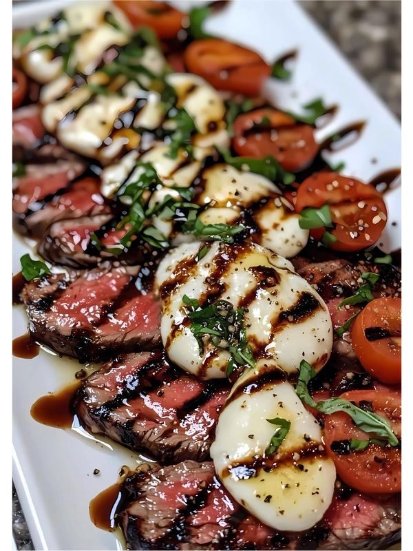 Fresh Mozzarella, Roasted Red Pepper and Fresh Basil with Balsamic Glaze on Ciabatta bread